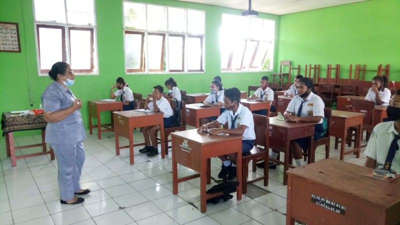Pagi itu, Tim Puskesmas Beru sebanyak tiga orang mendatangi SMPN 1 Maumere dan langsung menuju ke ruangan kelas.